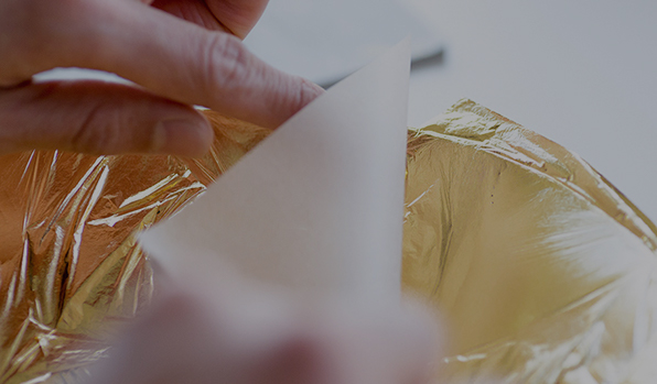 1万分の1mmという薄さの金箔に触れるたび、私たち箔座は、古来、人々が「金」をどれほど大切にし重用してきたかを想います。その想いを受け止め、国宝や重要文化財の存続にも貢献する日本古来の「縁付金箔(えんつけきんぱく)」の技を守り、継承し、箔を後世に残し繋ぐことこそ私たち箔座の使命と、強い覚悟を持つに至りました。