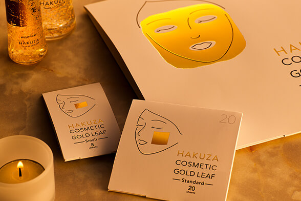 肌への効果とやさしさを追求したオリジナル美容箔「プラチナ金箔」をつくりあげ、スキンケアアイテムに使用。
