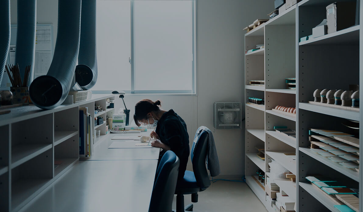 技術力に加え、箔に向き合う豊かな感性があって初めて「箔品」がつくられるという考えのもと、箔座が大切にしているのはヒューマニティ。生産性や効率性以上に、職人たちが豊かな心で箔に向き合うことに重きを置き、建物全体に“人”が存在する温かさが感じられる工房でありたい。その想いをもって、箔品工房は、作業に不可欠な安全かつ機能的な設備を整えることは当然として、感性やものづくりにおける理想を追求できる環境を目指しました。
