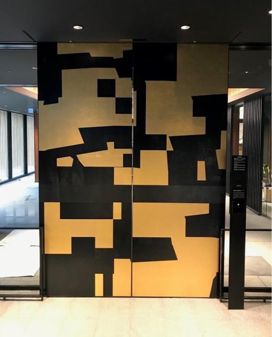 また、近年、400年を超える伝統技術でつくられる「縁付金箔」を、純金プラチナ箔 久遠色で再現した箔を使い、「現地加工」による、新表現「ランダム加工」が実現しました。箔座は、箔専門企業として、これからも箔の開発・製造・加工に力を注ぎます。