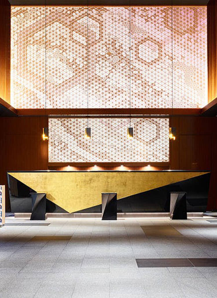 箔WORKSでは、「空間アートクリエイション」、「箔表現・加工の受託」、「現地加工」を展開しています。 目的、ご要望に応じた展開で、箔の新たなかたちを実現します。