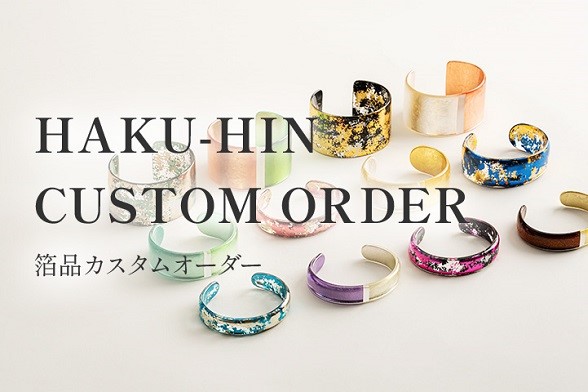 オンライン上で仕上がりを確認しながら、お好みの箔、組み合わせで箔座のアクセサリーをカスタマイズしてご自分だけの特別な品をご注文いただけます。贈りものにもおすすめです。