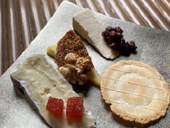 今回のイベントのために厳選されたチーズ3種。能登の風には、柔らかな食感とクリーミーな味わいのチーズ(ブリア・サヴァラン)に小豆を添えて。※写真奥