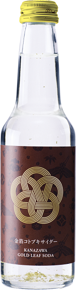 「水を磨いて100余年」をうたう老舗サイダーメーカー・鈴木鉱泉株式会社(三重県)のオリジナルサイダーと、箔座の金箔のコラボレーション。グラスに注げば金箔が舞い、華やかなひとときを演出します。子どもからおとなまで、お酒を飲まない方も、みんな一緒に贅沢な乾杯をお楽しみいただけます。