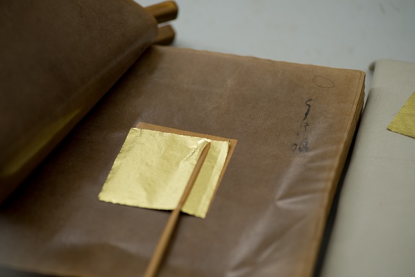 ・抜き仕事:打ち上がった金箔を、箔打ち紙から抜き取る工程