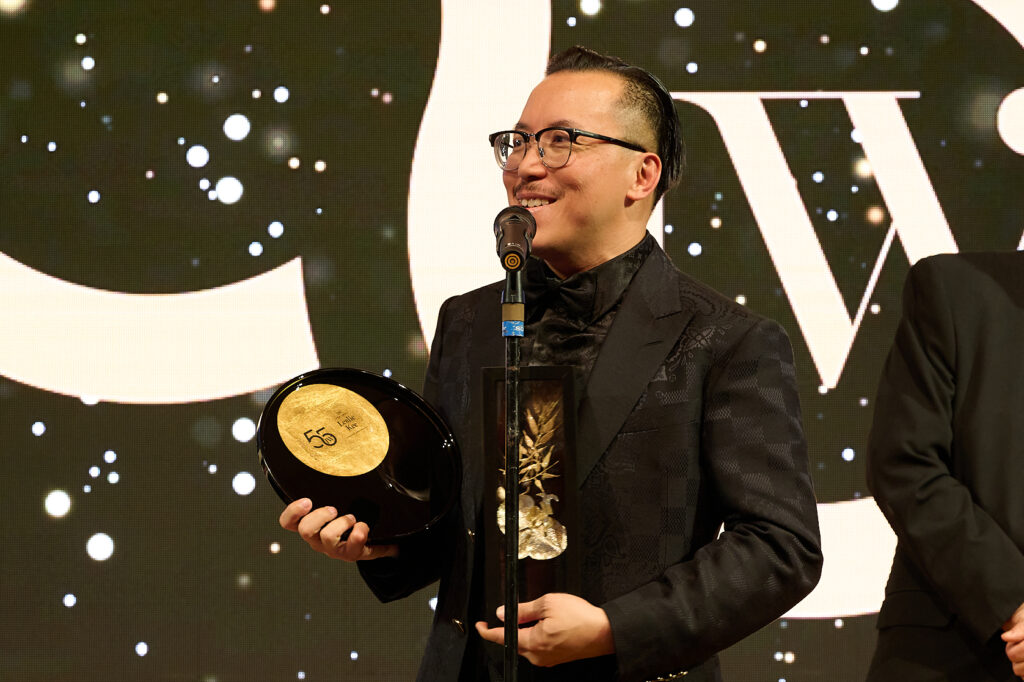 この栄誉ある「ICON AWARDS」のトロフィーとして、箔座の箔品である「ドットトレイ墨S(永遠色)」に名入れ対応しご使用いただきました。