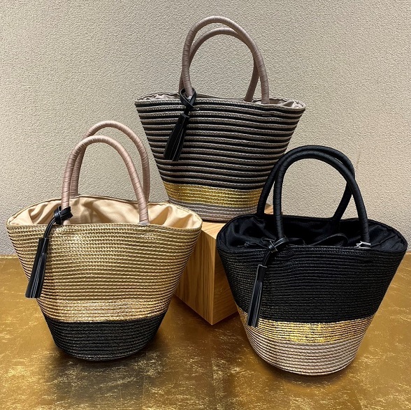 今年は、落ち着いた雰囲気のバイカラー2種と、春夏にぴったりなボーダー柄1種が新登場。帯状にざっくりとあしらった箔がアクセントです。