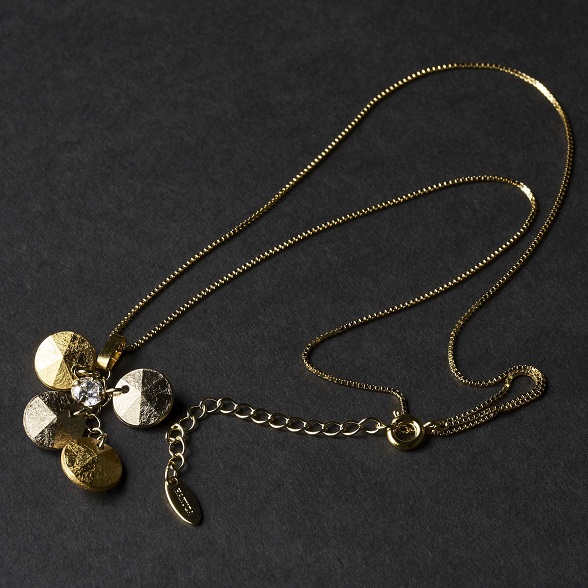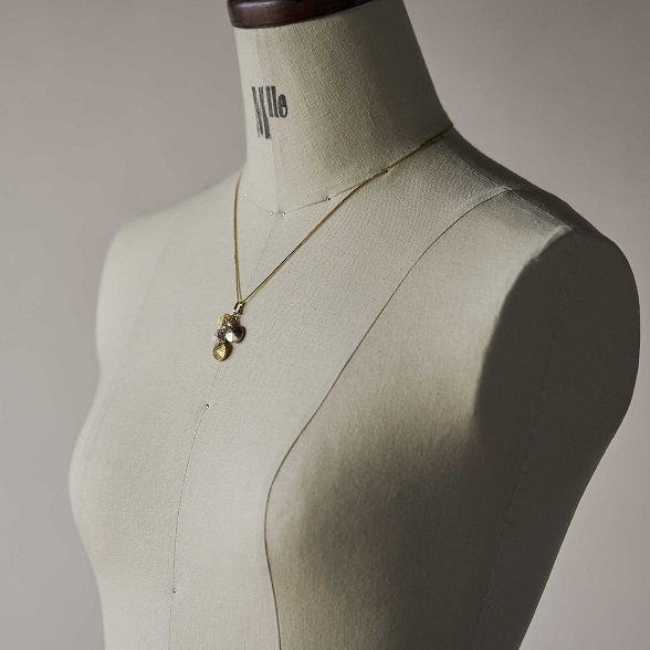 硬質でクールでありながら、女性らしいエレガントさを感じさせるネックレス。優美な雰囲気のネックレストップに、光沢がある滑らかな着け心地のチェーンがマッチしています。アジャスターで長さ調節が出来ます。