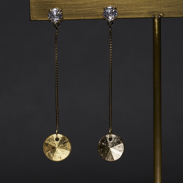 揺れるたび瞬く、ジルコニアと箔ディスクの光に目を奪われます。