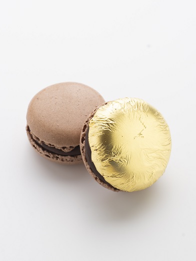 箱を開けば、眩い金箔のかがやき。マカロンのお味は、ショコラ・フランボワーズシトロン・カフェの3種。口に入れた途端、シチリア産アーモンドが贅沢に香り、濃厚なチョコレートガナッシュがとろけます。