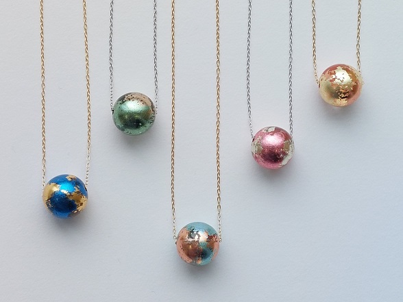 ネックレストップは、大粒の16㎜サイズの「色箔珠」です。