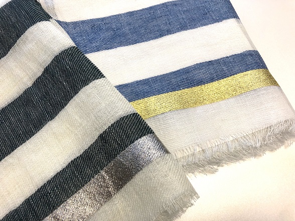 マリンテイストのボーダー柄ストールに、箔のラインを一筋施しました。