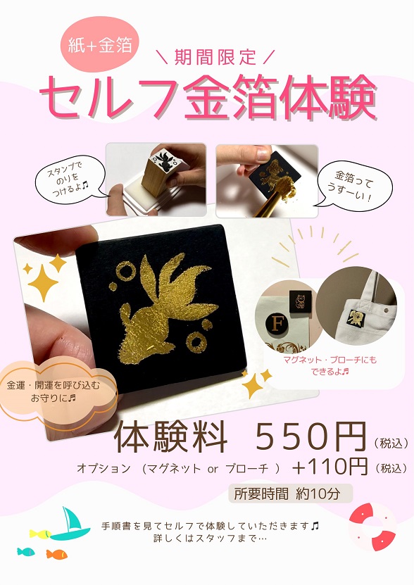 セルフサービスで楽しむ金箔体験(9/3更新)