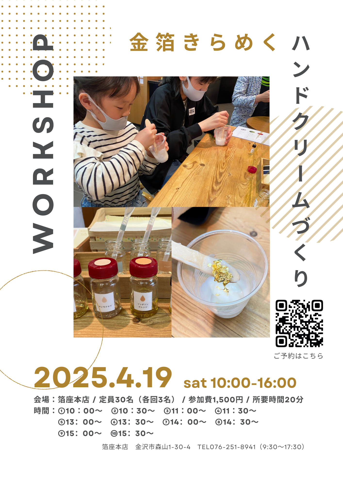 TOP 店舗からのお知らせ 箔座×ケイズ コラボ企画「金箔入りハンドクリームワークショップ」