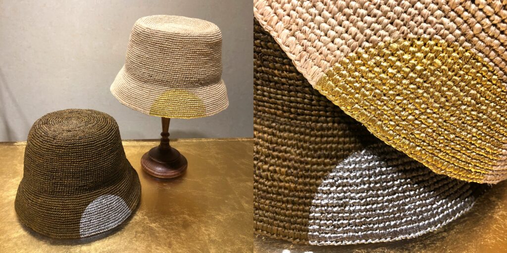 ラフィア素材のシンプルなバケットハットに、箔で個性をプラスしました。