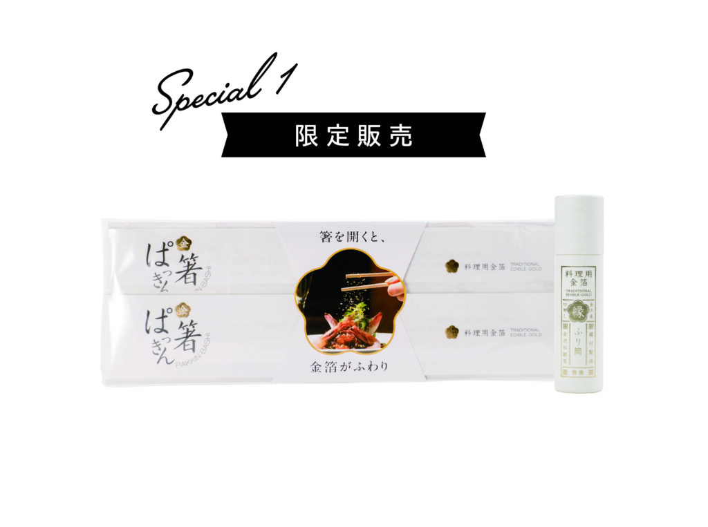“ぱっきん”と箸を割るだけで、ひらひらと金箔が舞う「ぱっきん箸」。