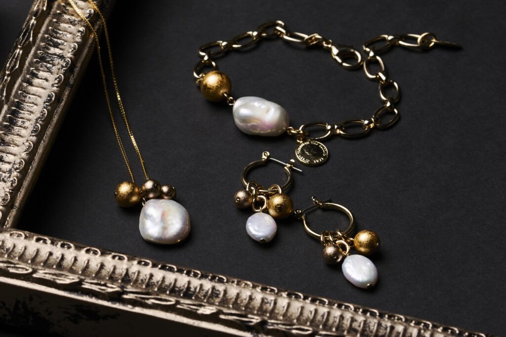 ホリデーシーズンを彩る、箔珠と淡水パールのアクセサリー